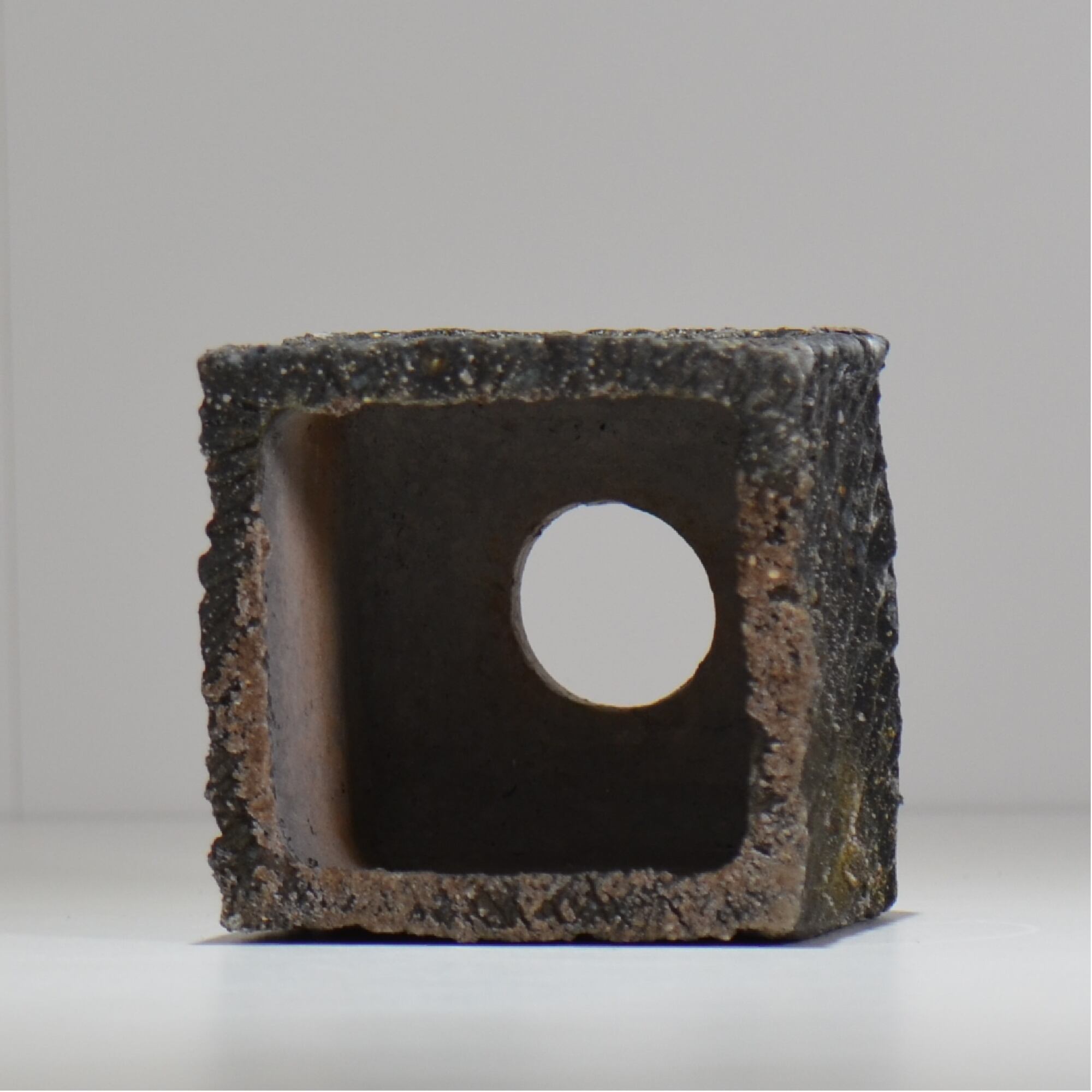 身の回りの自然からインスパイアされた質感やデザインを、穴窯、倒炎式薪窯、ガス窯を使い分け、自然の一部のような作品を制作している。