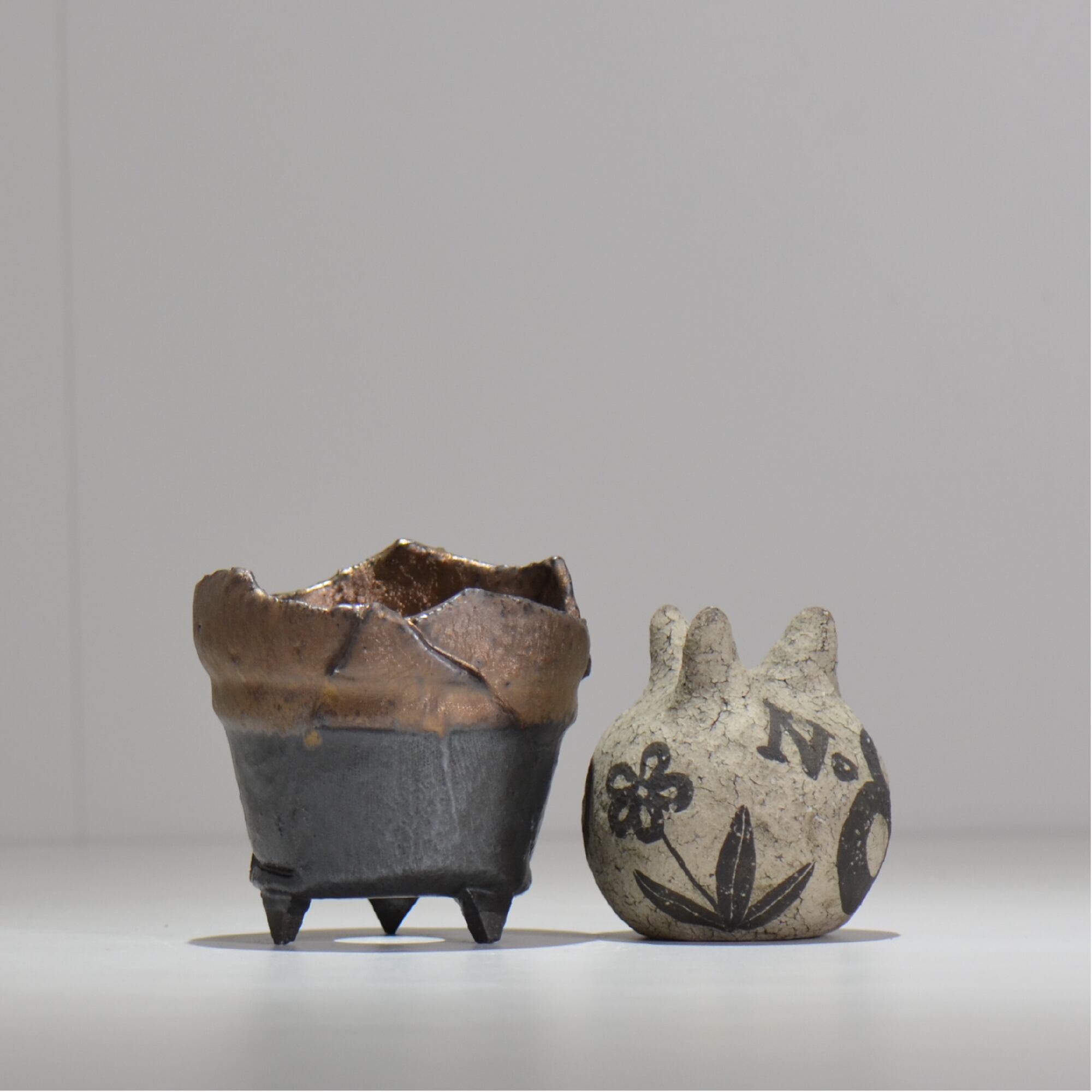 グラフィックデザイン・プロダクトデザインでのものづくりを経て、 川合牧人氏に師事し陶芸の制作を始める