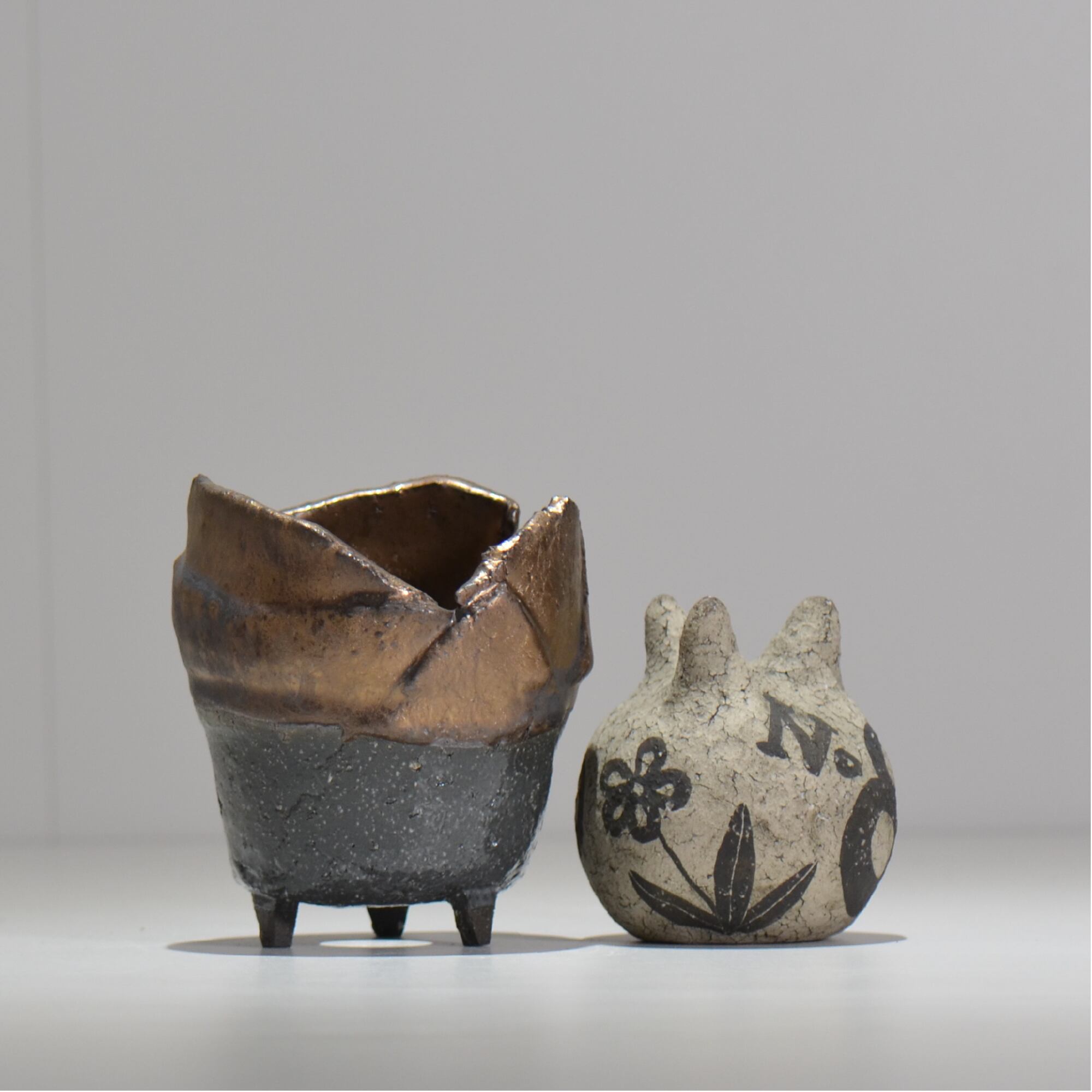 グラフィックデザイン・プロダクトデザインでのものづくりを経て、 川合牧人氏に師事し陶芸の制作を始める