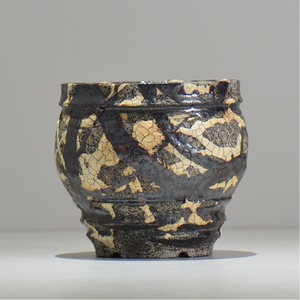 白と黒の釉薬を折り重ねて「蔓-kazura-」を表現しました。