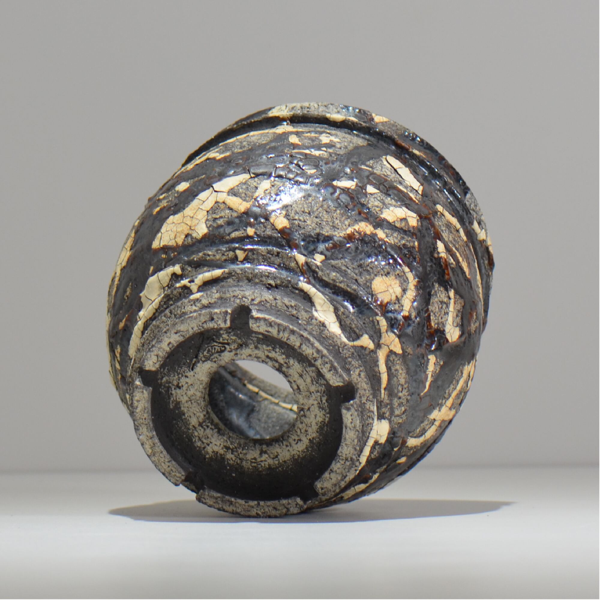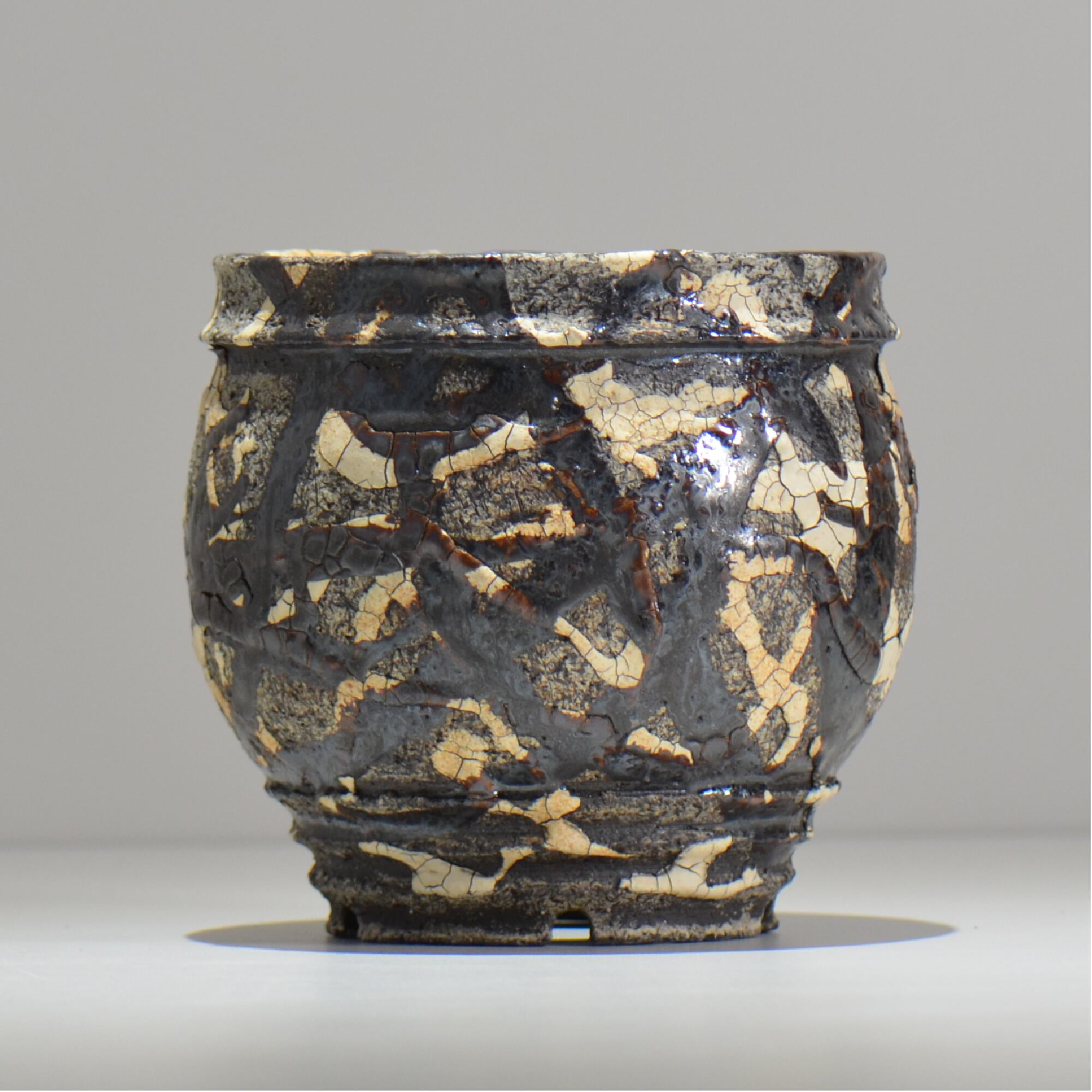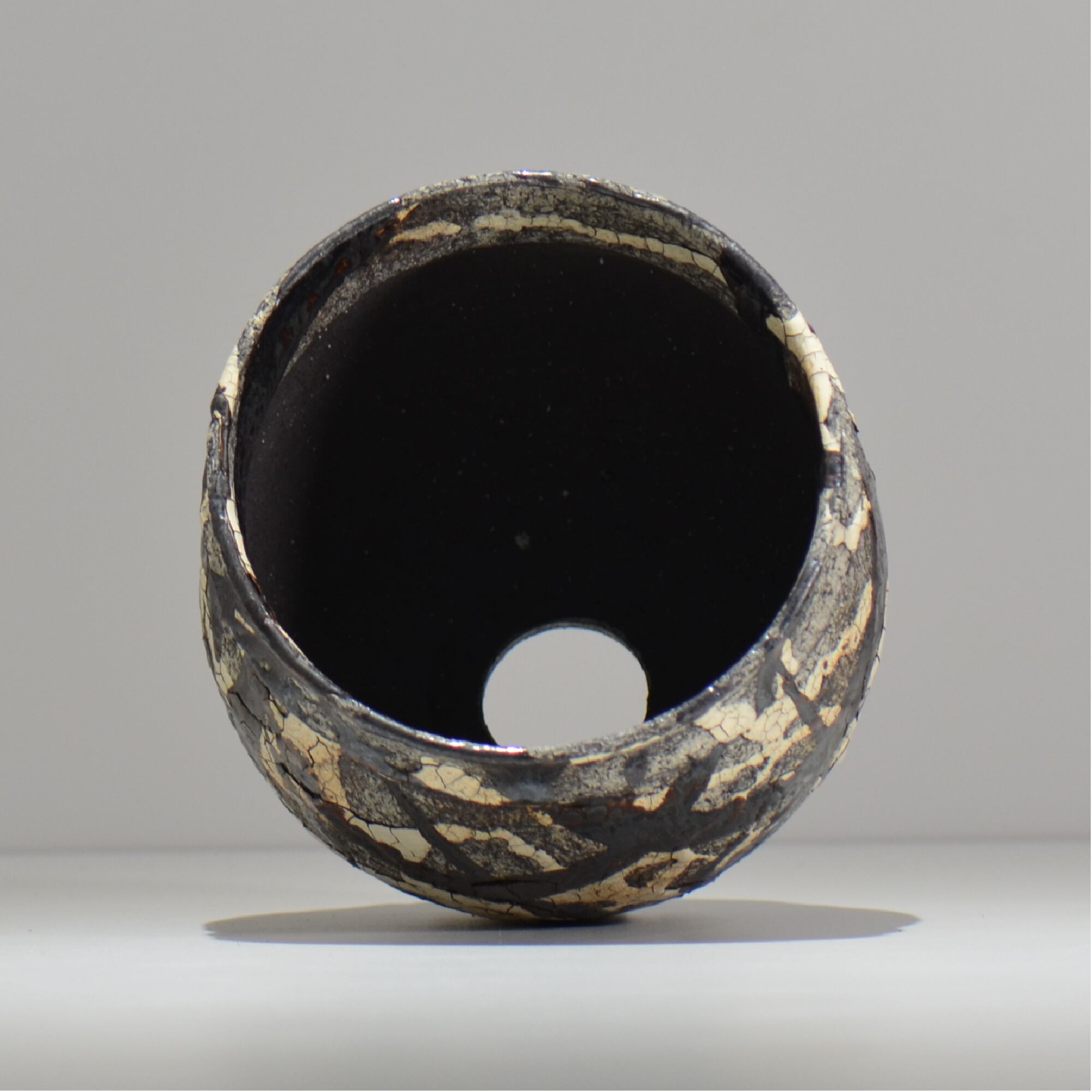 白と黒の釉薬を折り重ねて「蔓-kazura-」を表現しました。