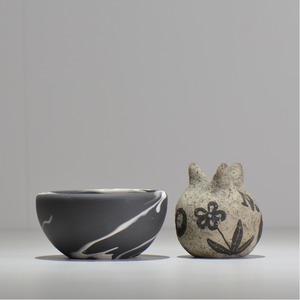 心に浮かぶアイディアを土を手にして形にしています。 陶土、磁土色々な土を使いフリースタイルな技法で表現されている作家さんです。