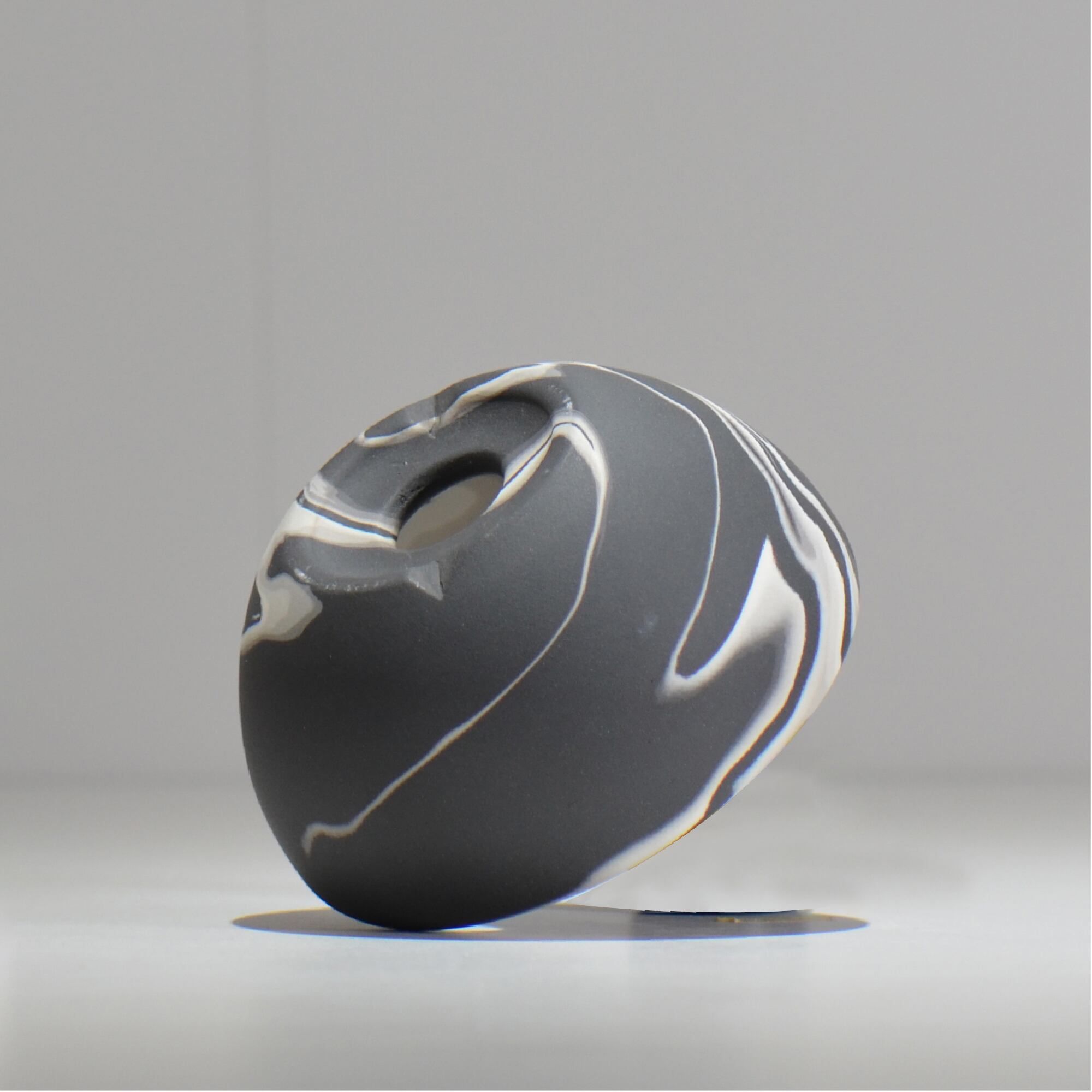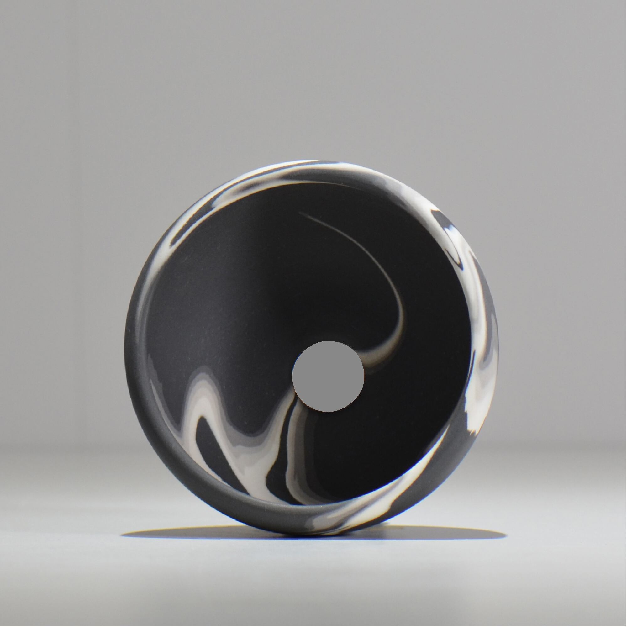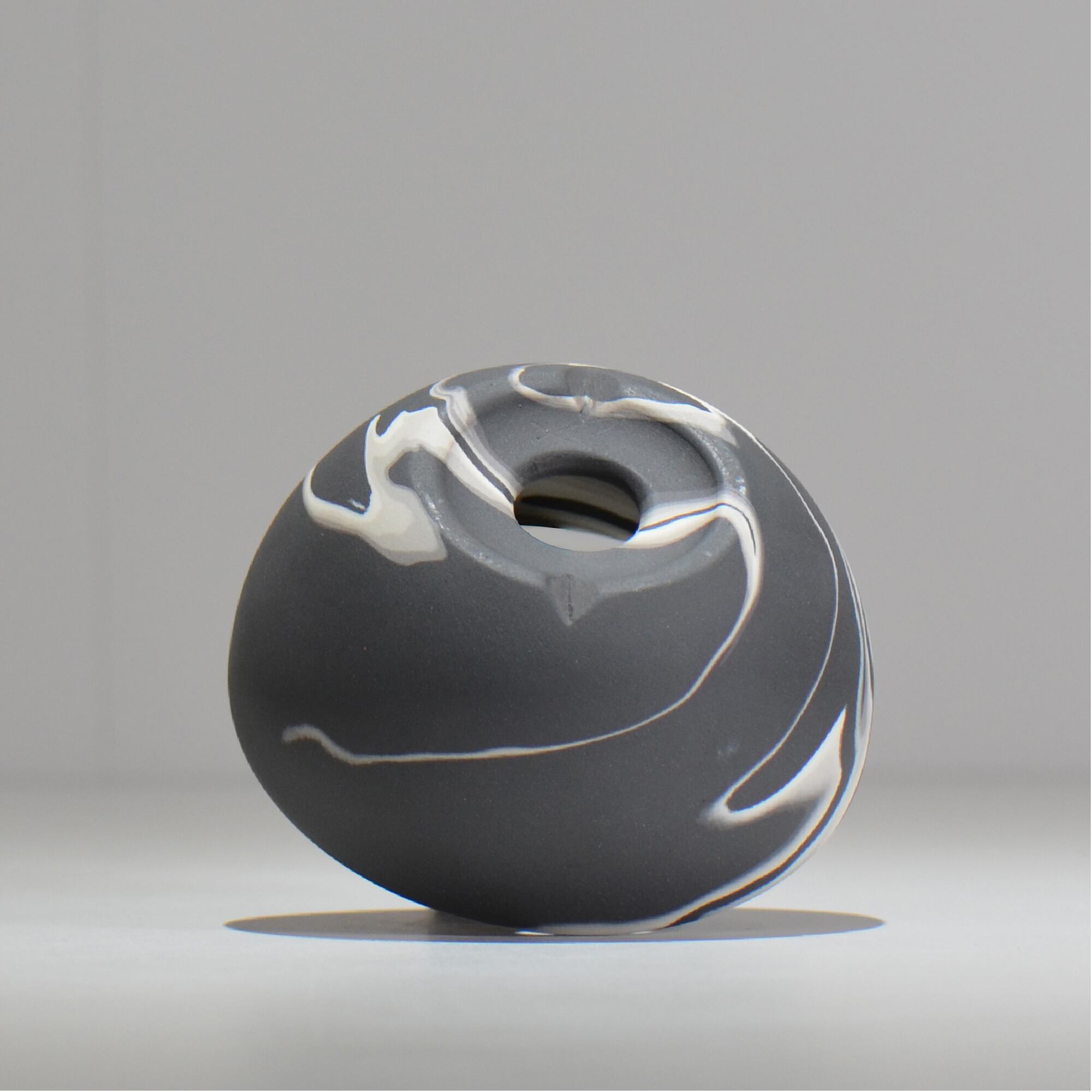 色の異なる磁土を一緒に練り合わせて成形し、全体を削ってゆくと様々な模様が表出してきます。