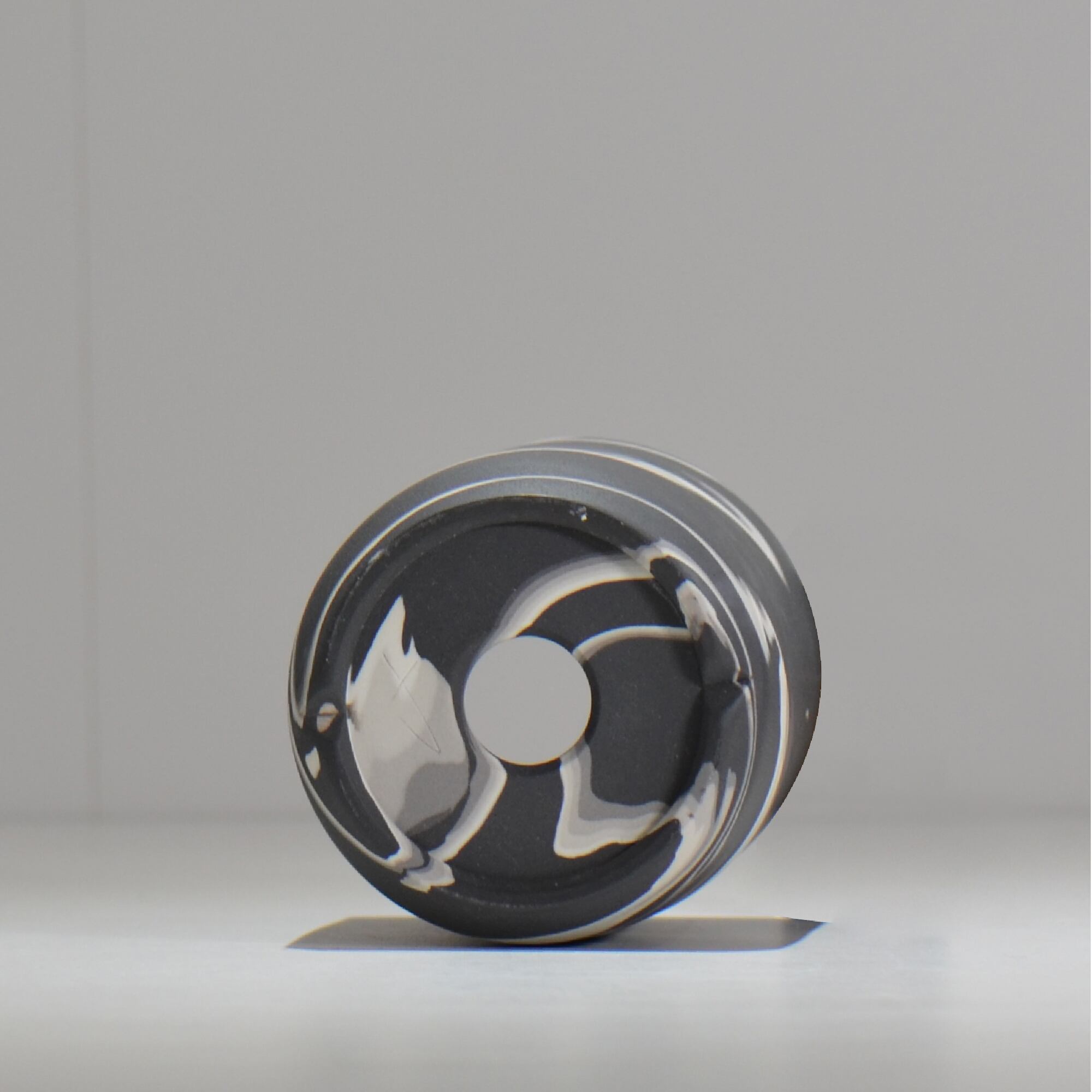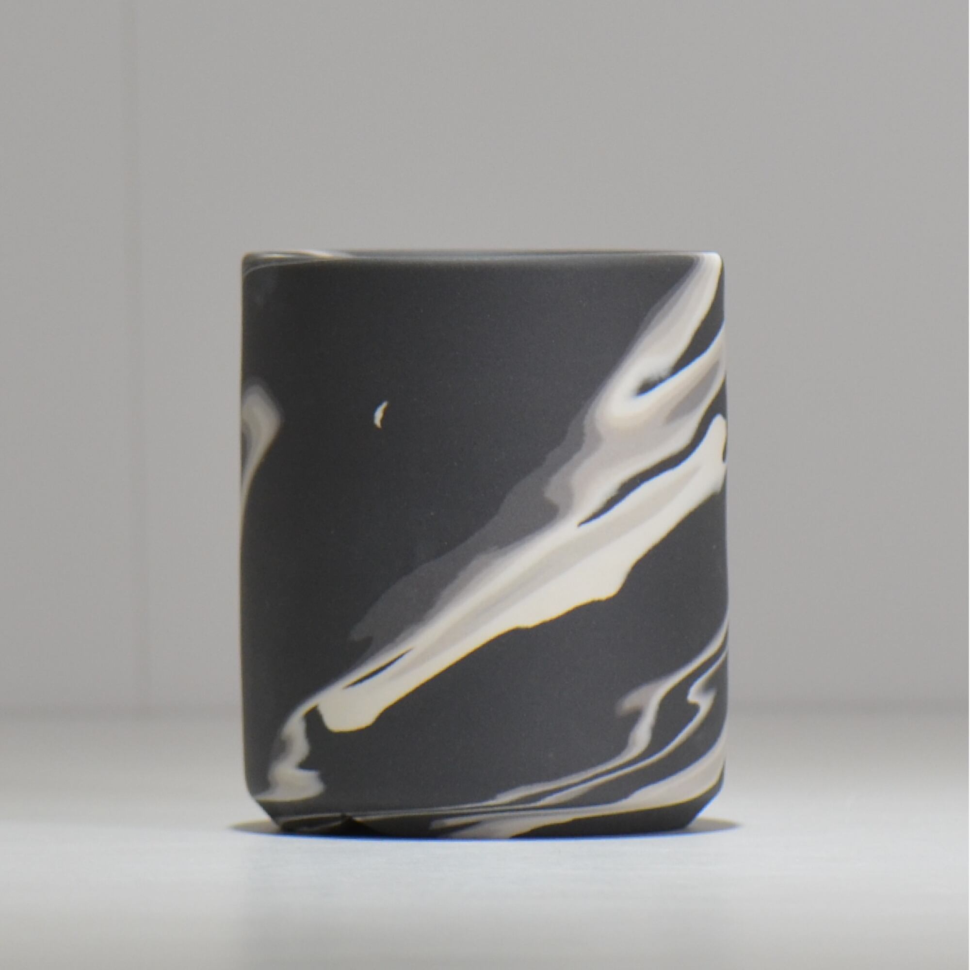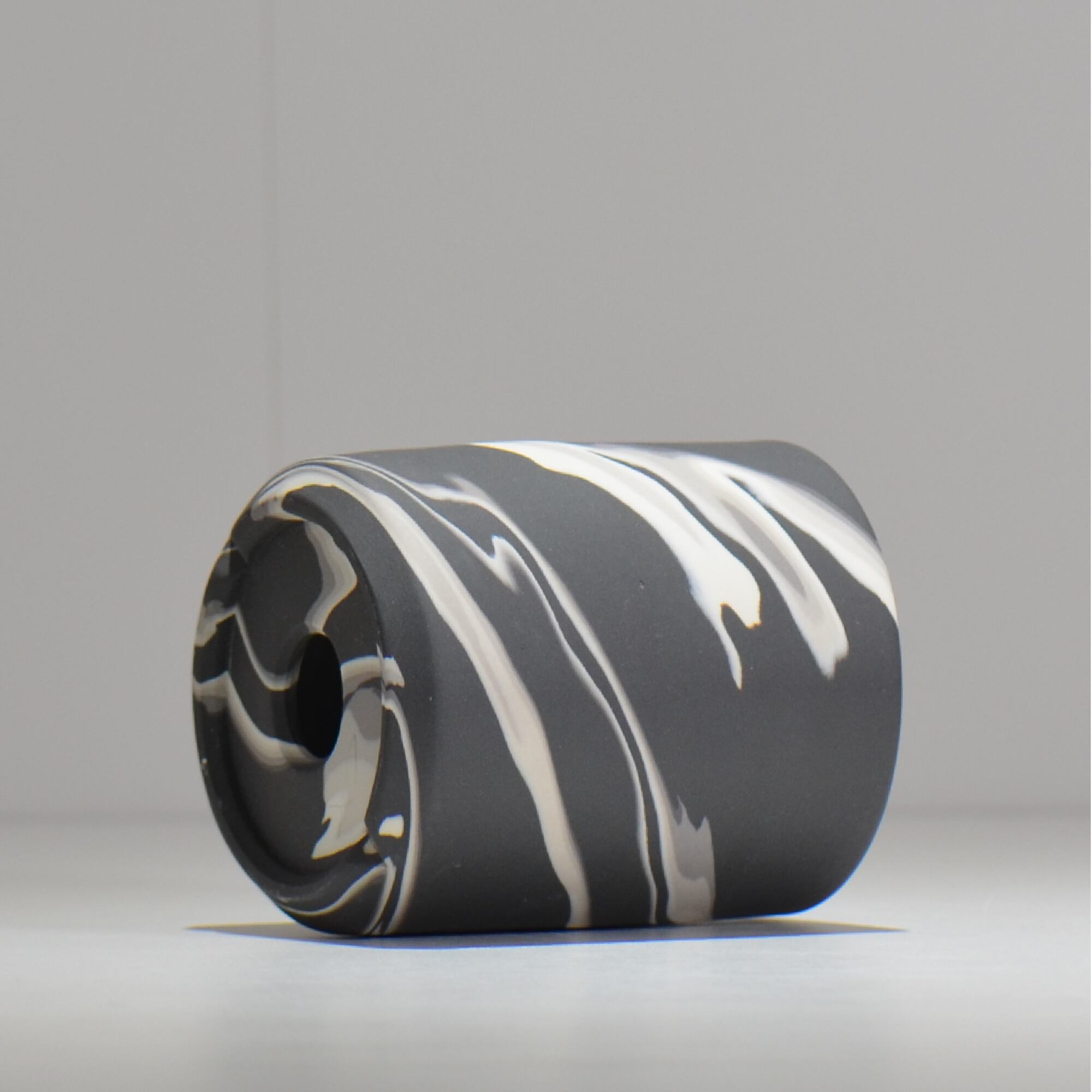 色の異なる磁土を一緒に練り合わせて成形し、全体を削ってゆくと様々な模様が表出してきます。