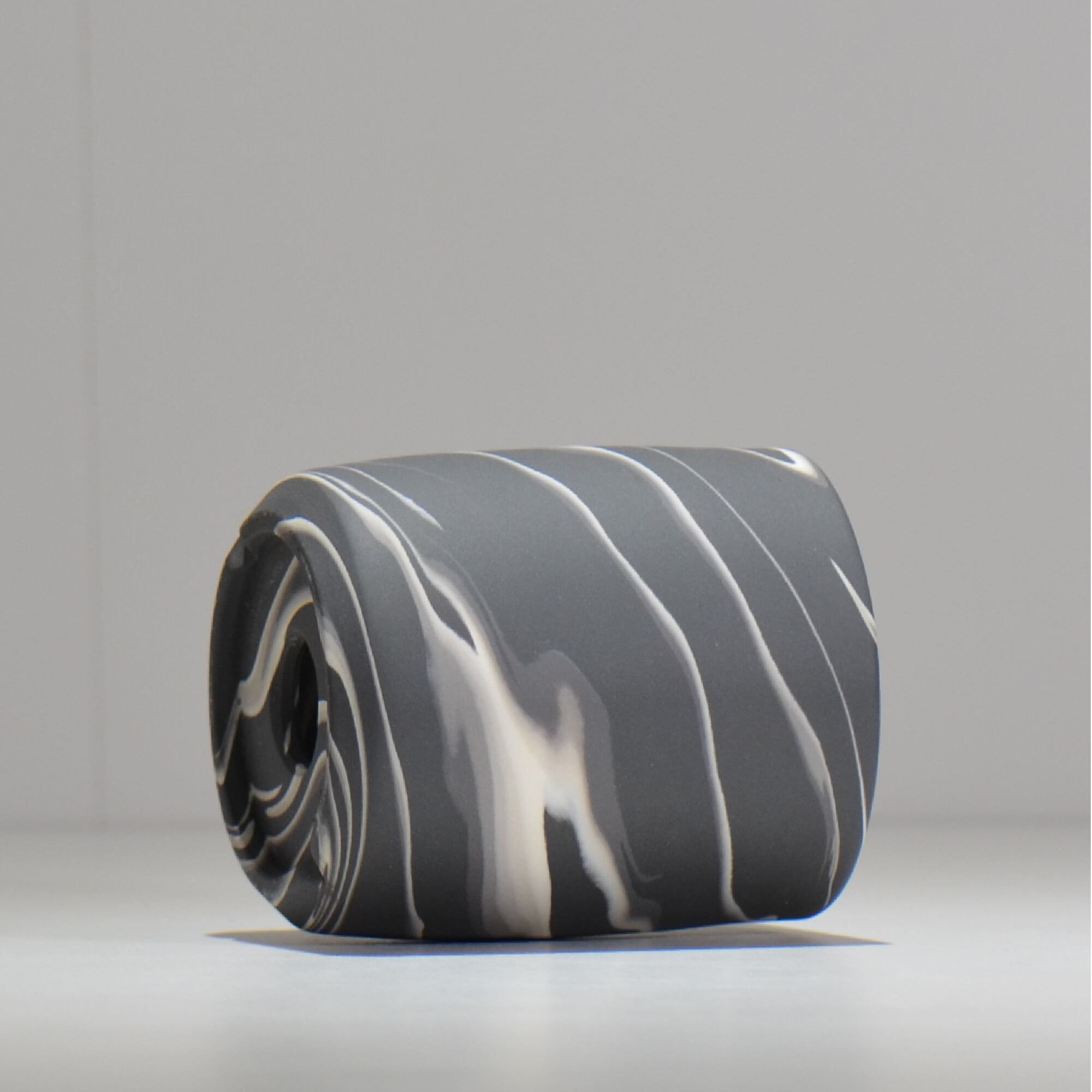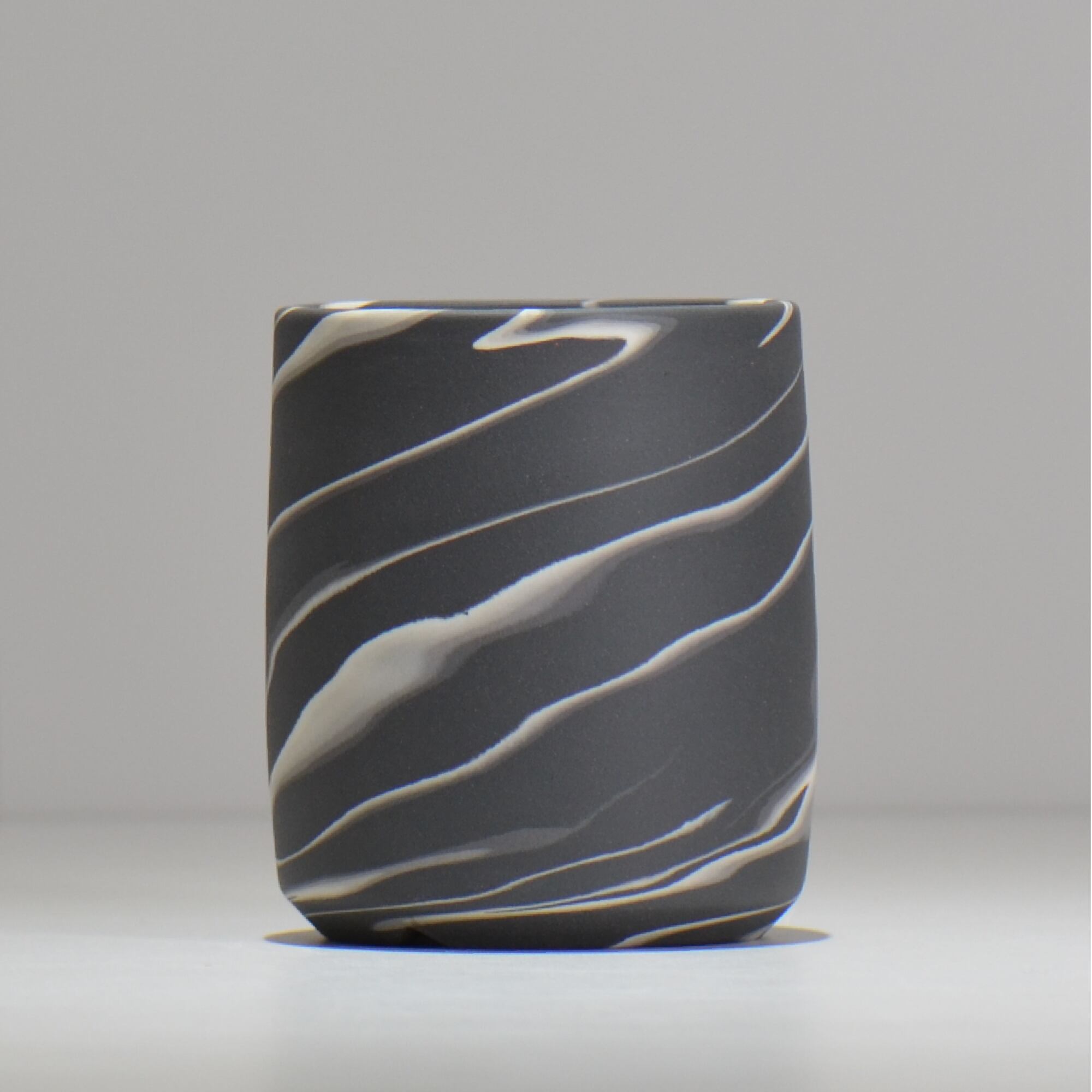 色の異なる磁土を一緒に練り合わせて成形し、全体を削ってゆくと様々な模様が表出してきます。
