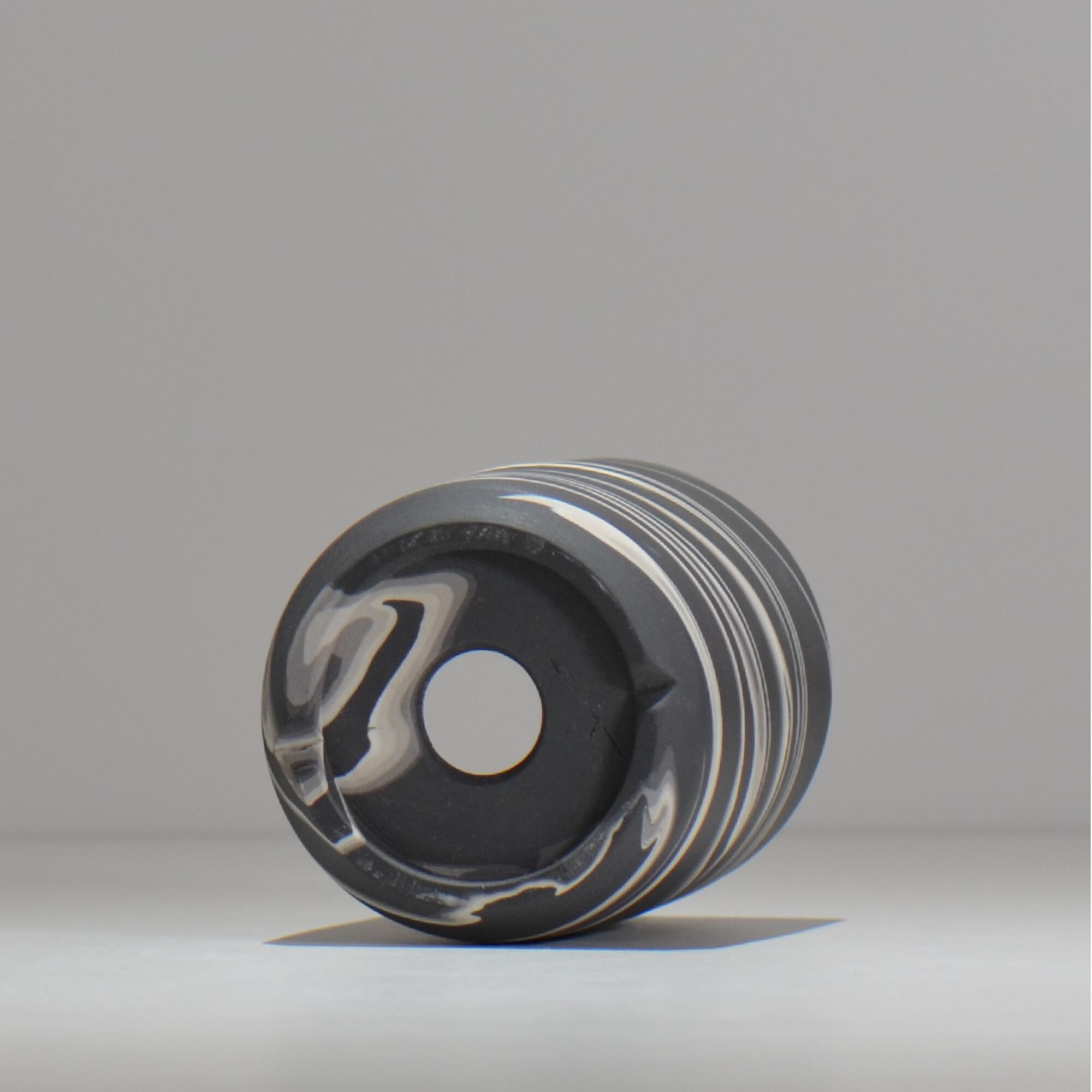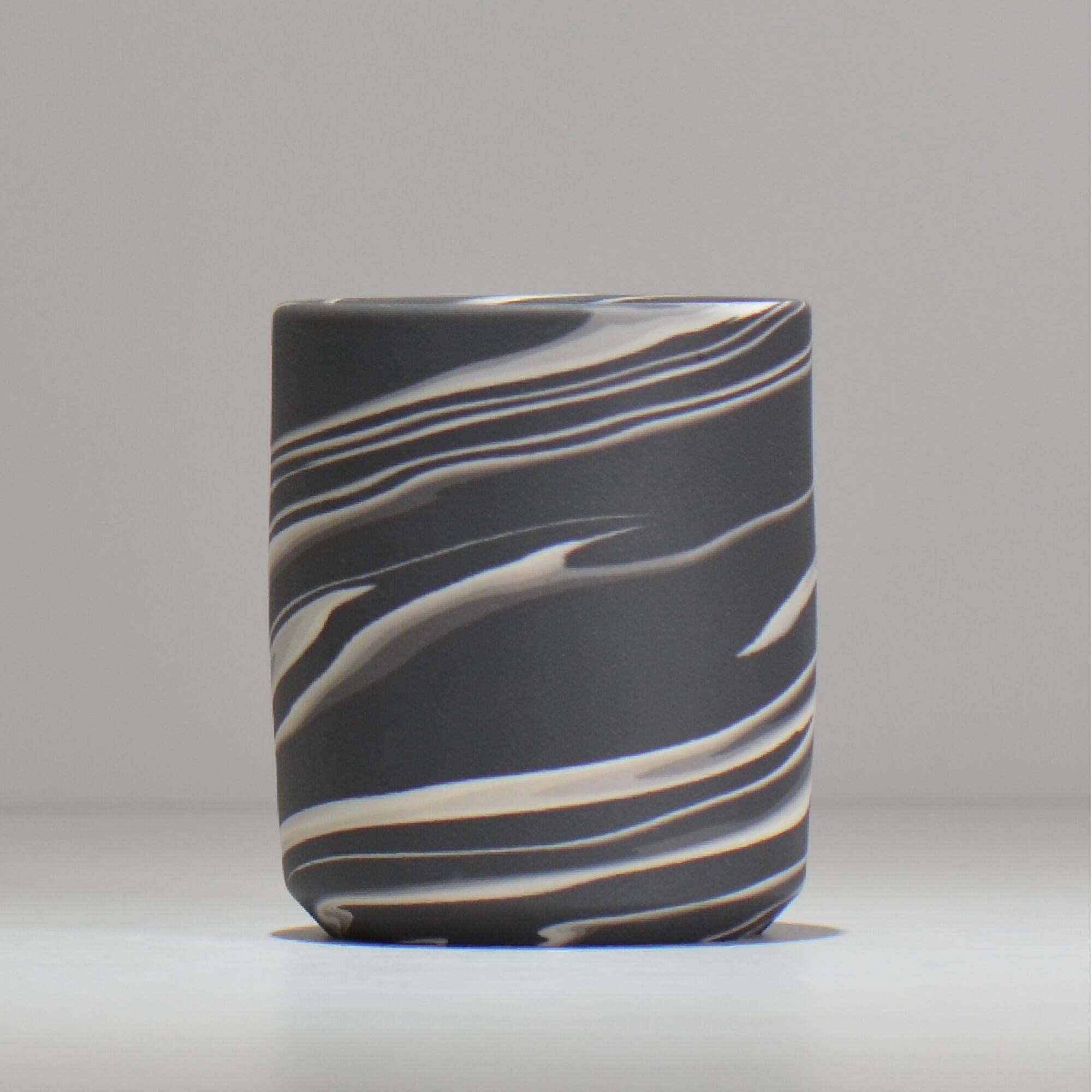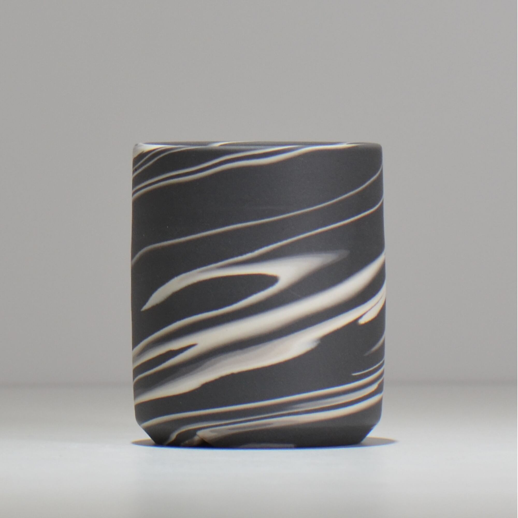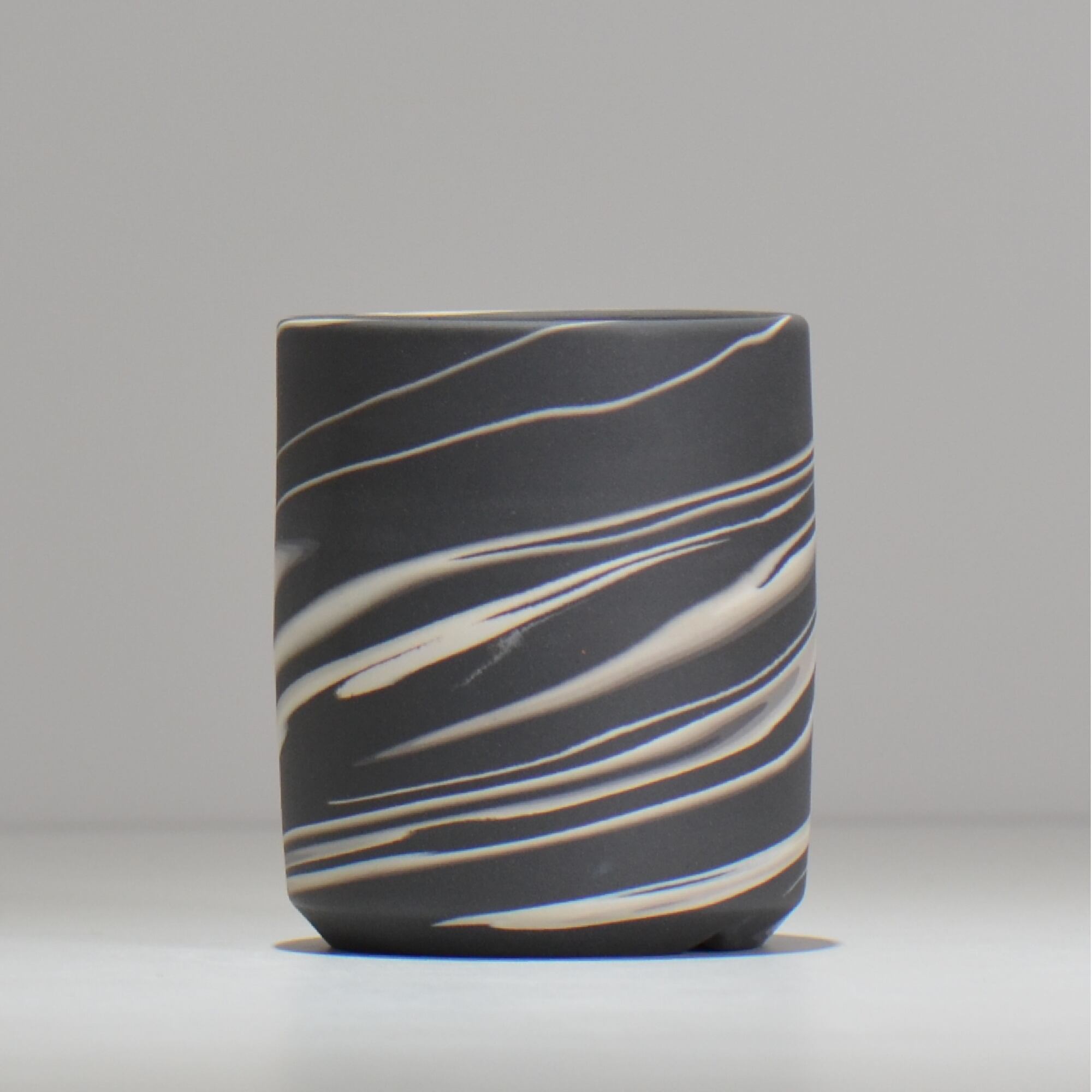 色の異なる磁土を一緒に練り合わせて成形し、全体を削ってゆくと様々な模様が表出してきます。