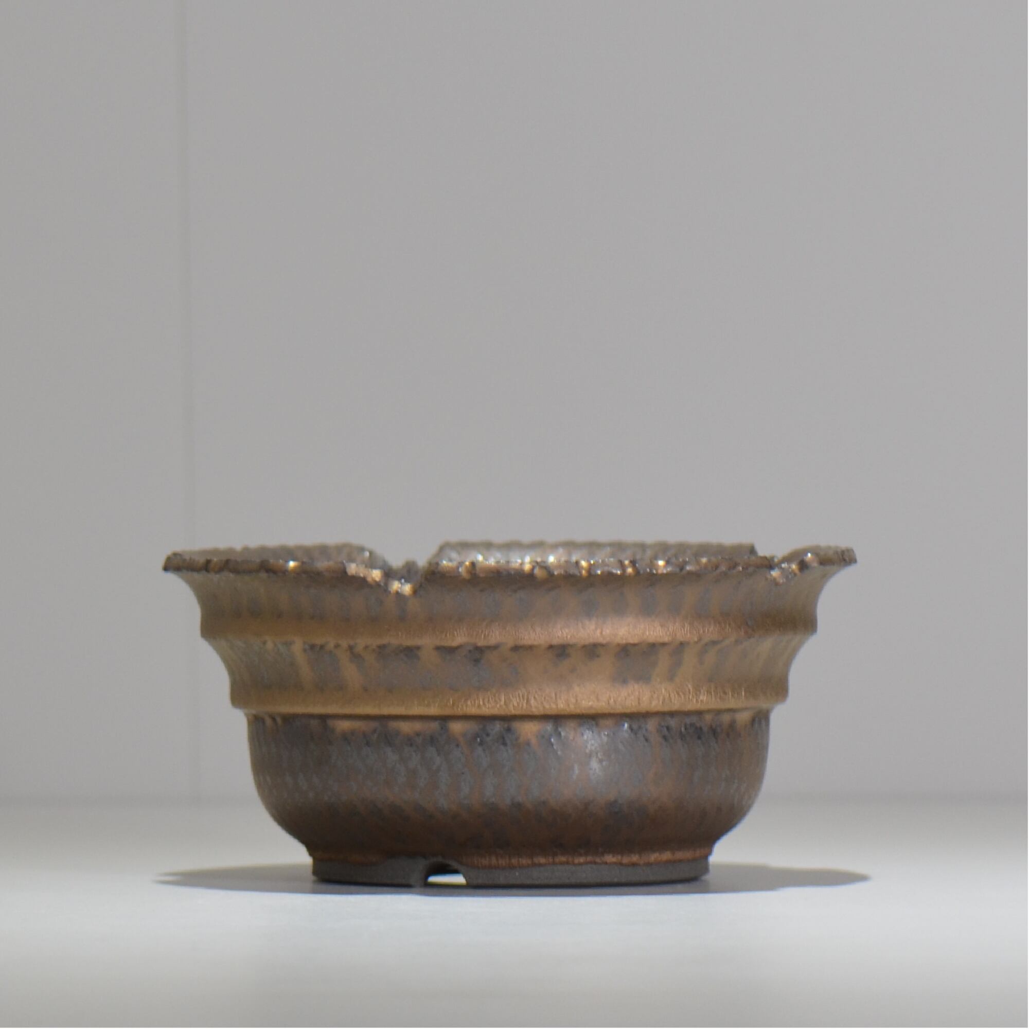 笠間焼の伝統技法である「飛び鉋(飛び鉋)」を現代風にアレンジし、釉薬とのコンビネーションにより、独特なテクスチャーを作り出します。