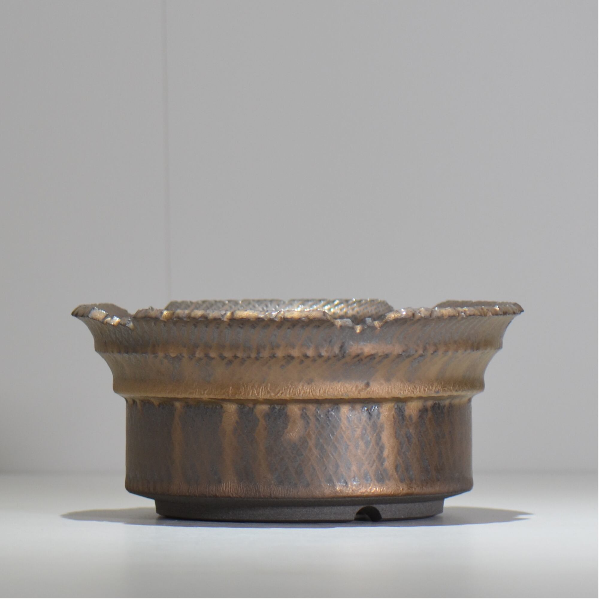 笠間焼の伝統技法である「飛び鉋(飛び鉋)」を現代風にアレンジし、釉薬とのコンビネーションにより独特なテクスチャーを作り出します。