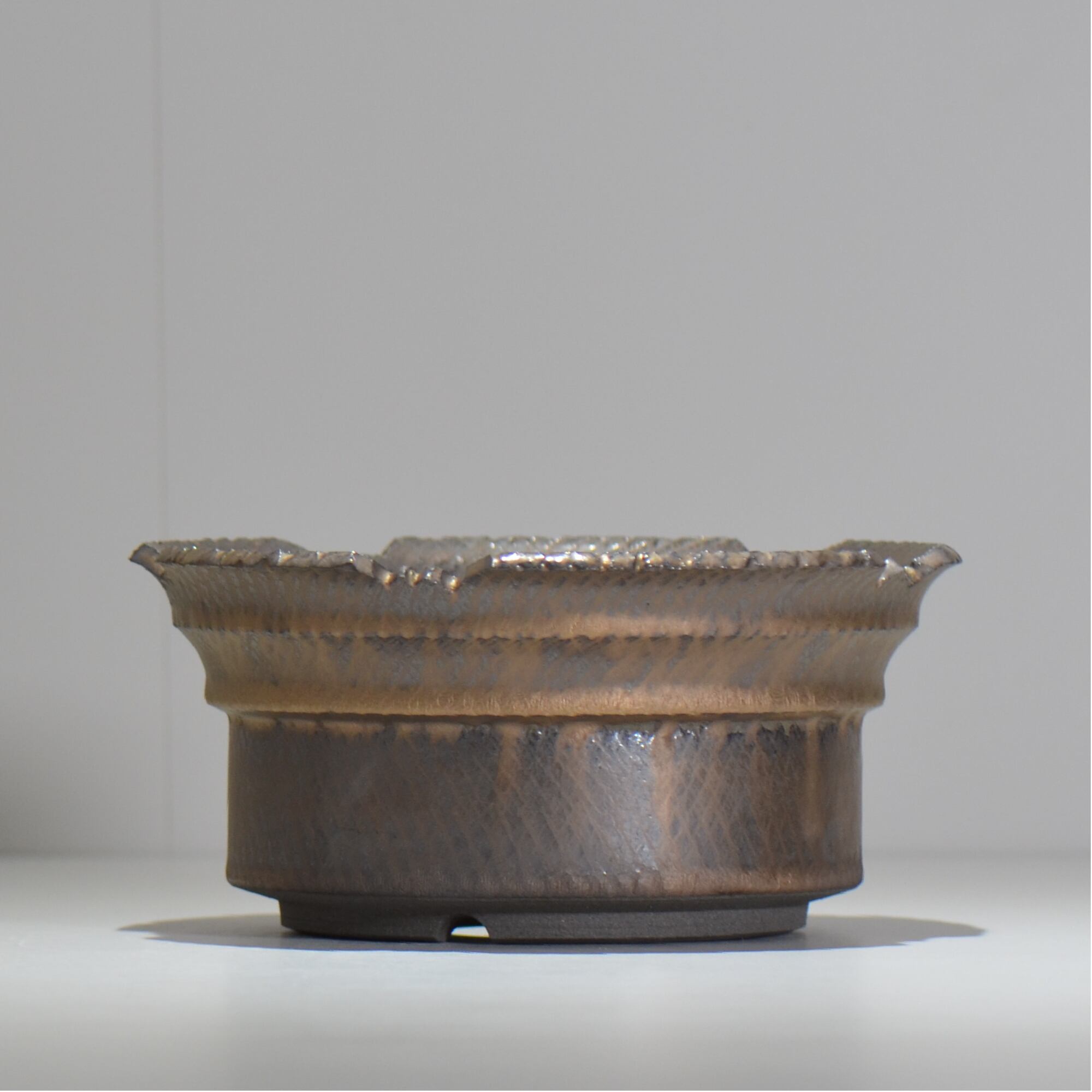 笠間焼の伝統技法である「飛び鉋(飛び鉋)」を現代風にアレンジし、釉薬とのコンビネーションにより、独特なテクスチャーを作り出します。