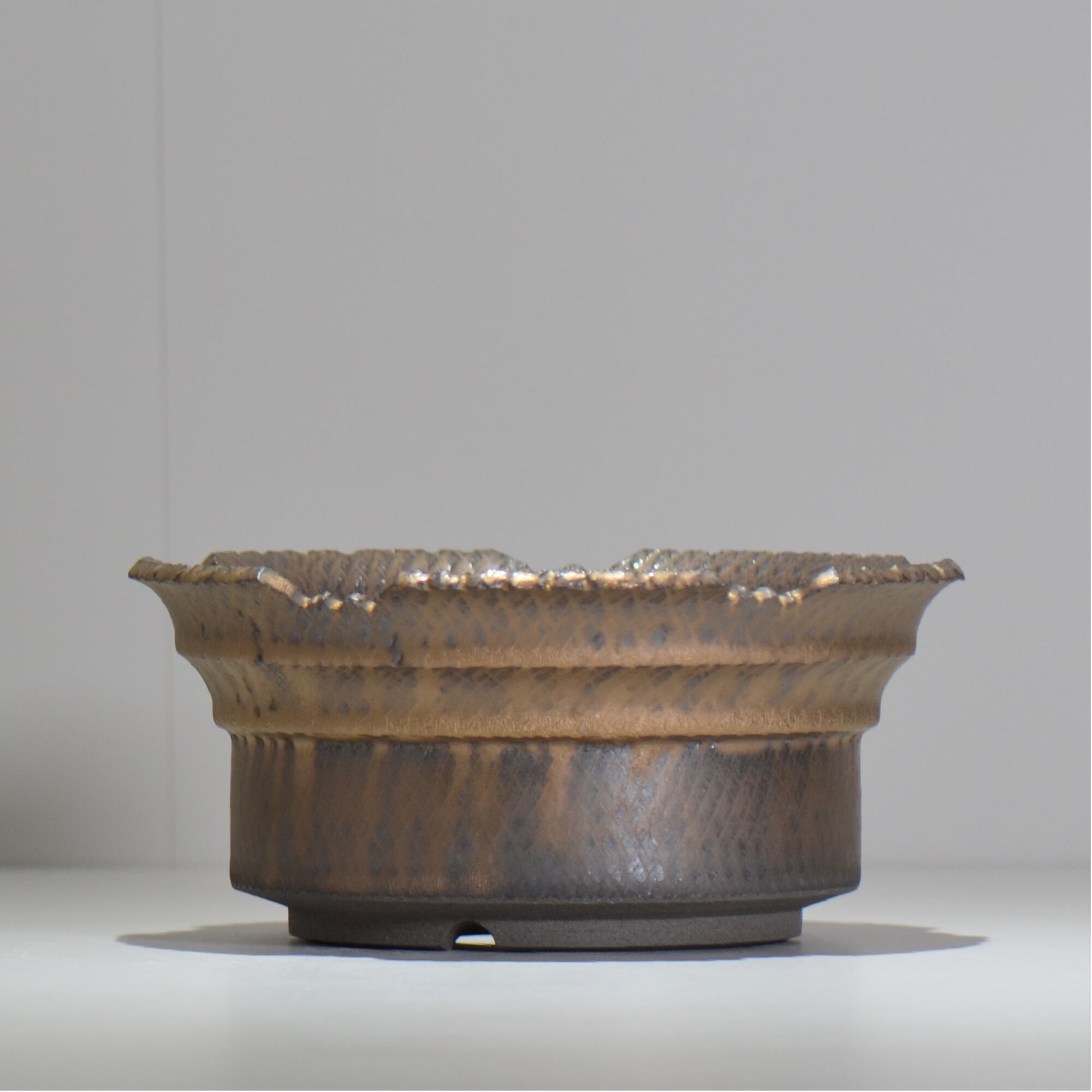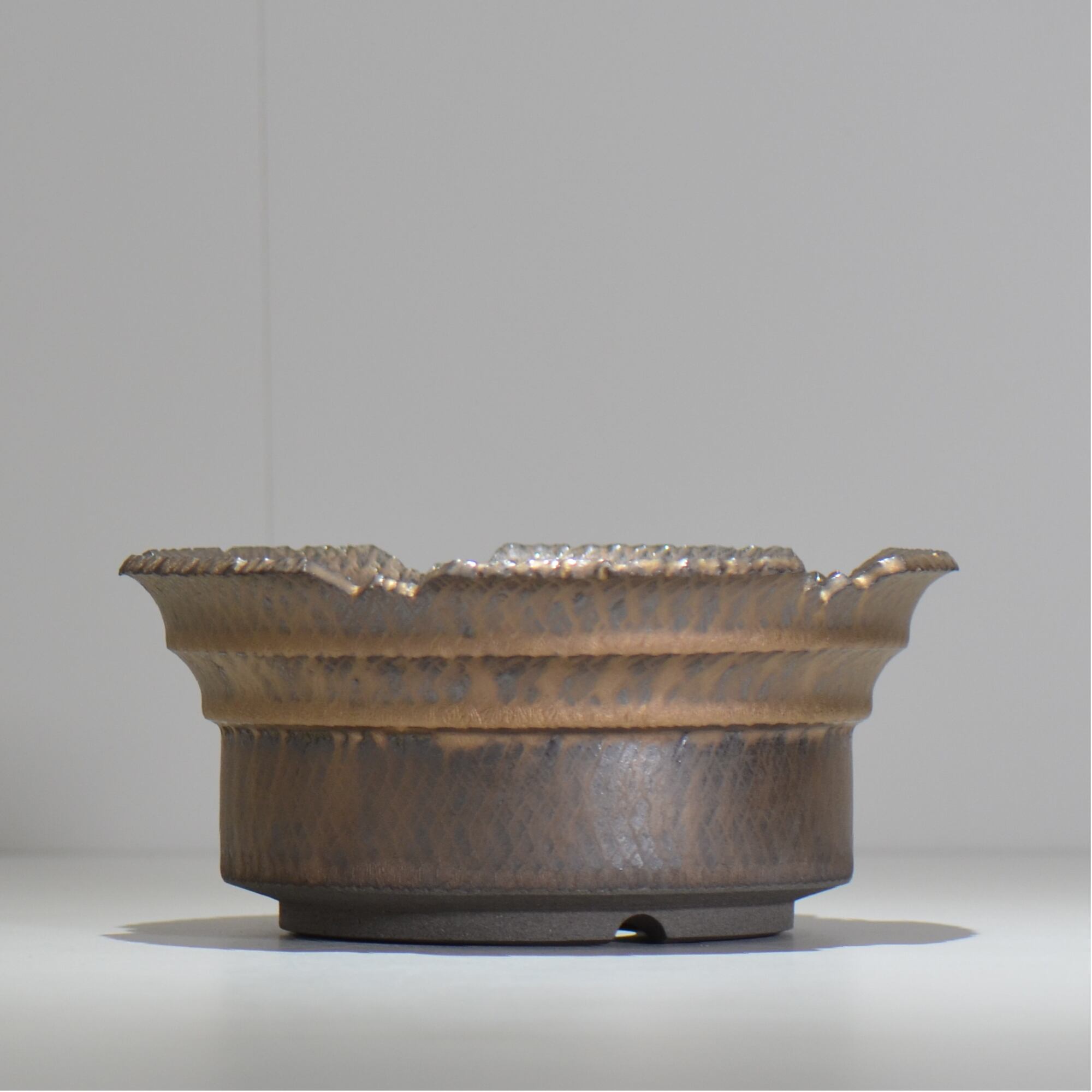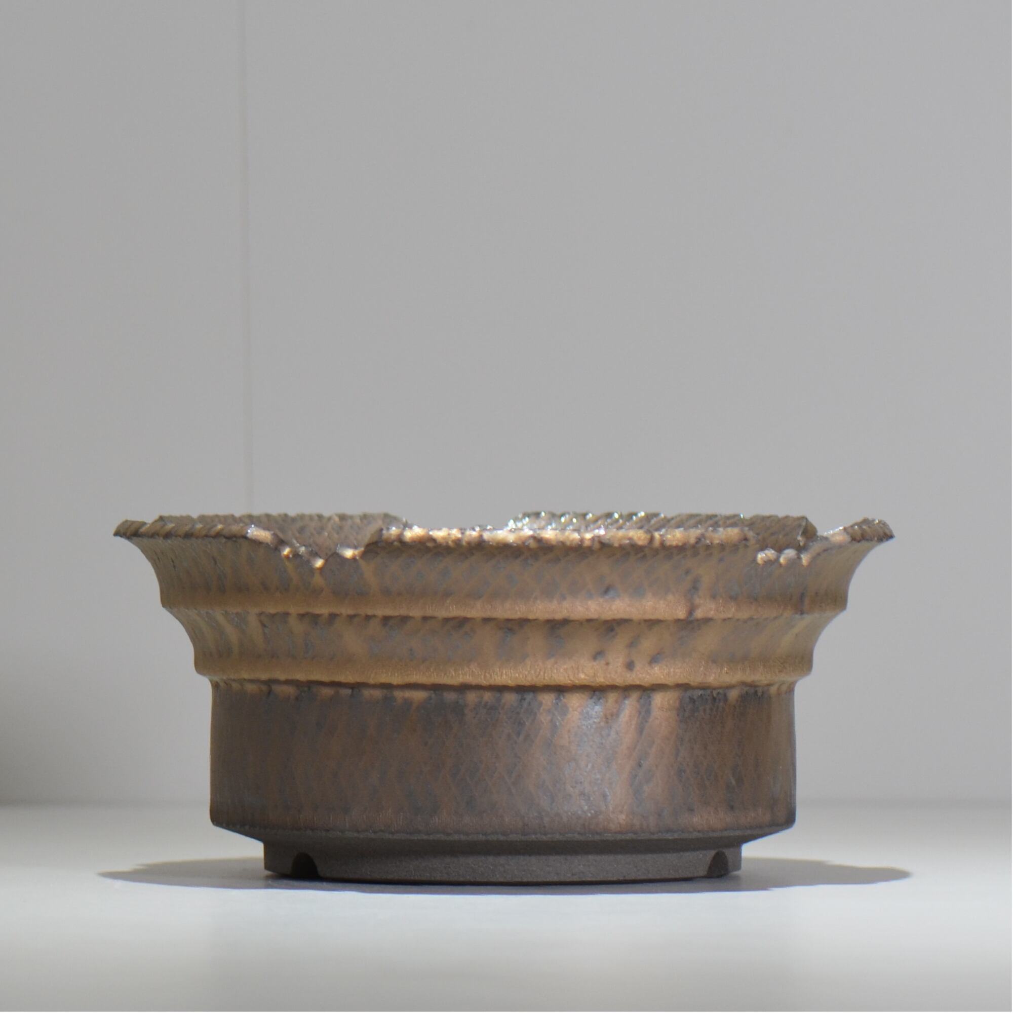 笠間焼の伝統技法である「飛び鉋(飛び鉋)」を現代風にアレンジし、釉薬とのコンビネーションにより、独特なテクスチャーを作り出します。