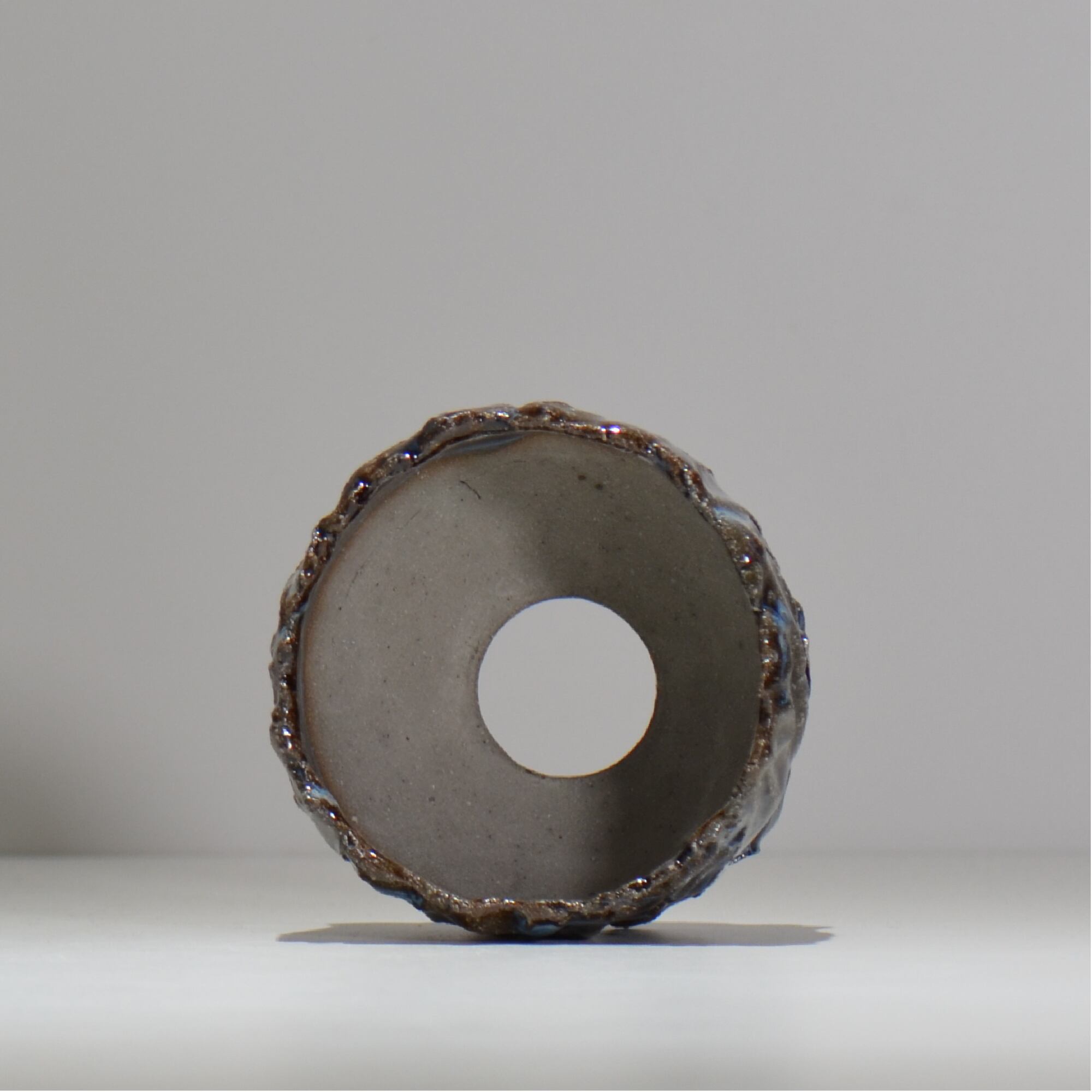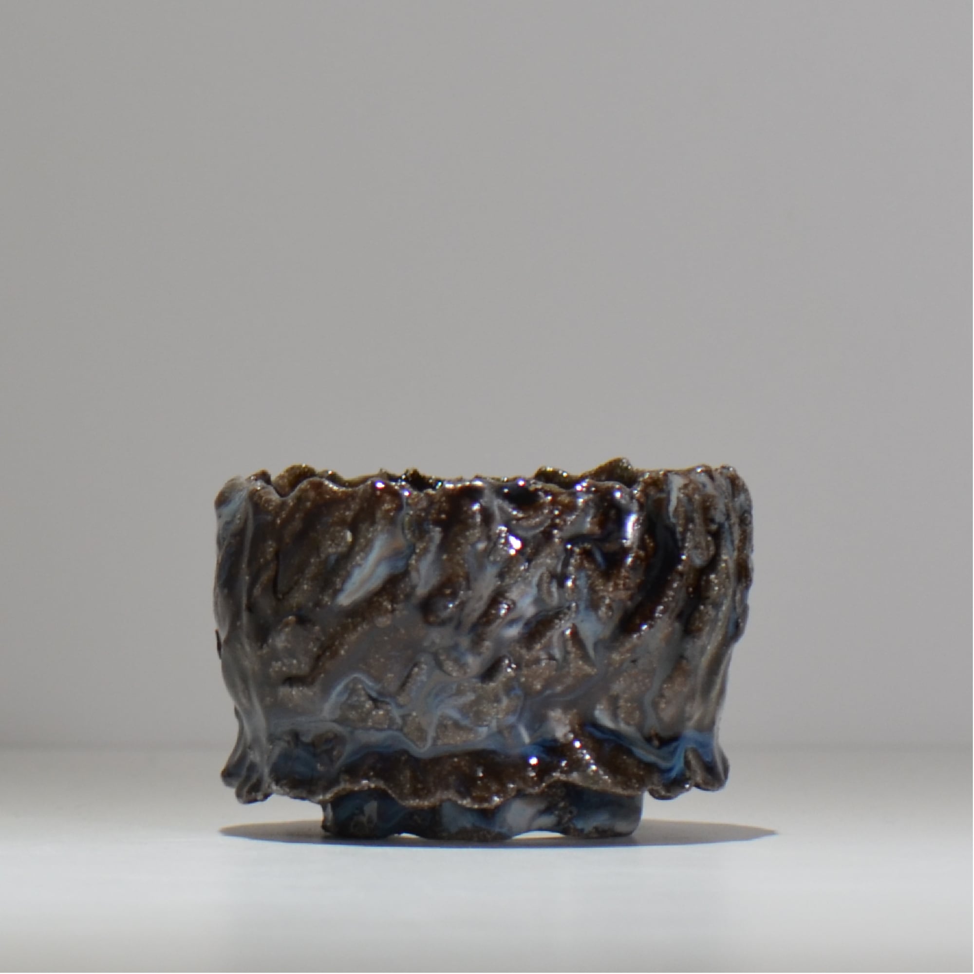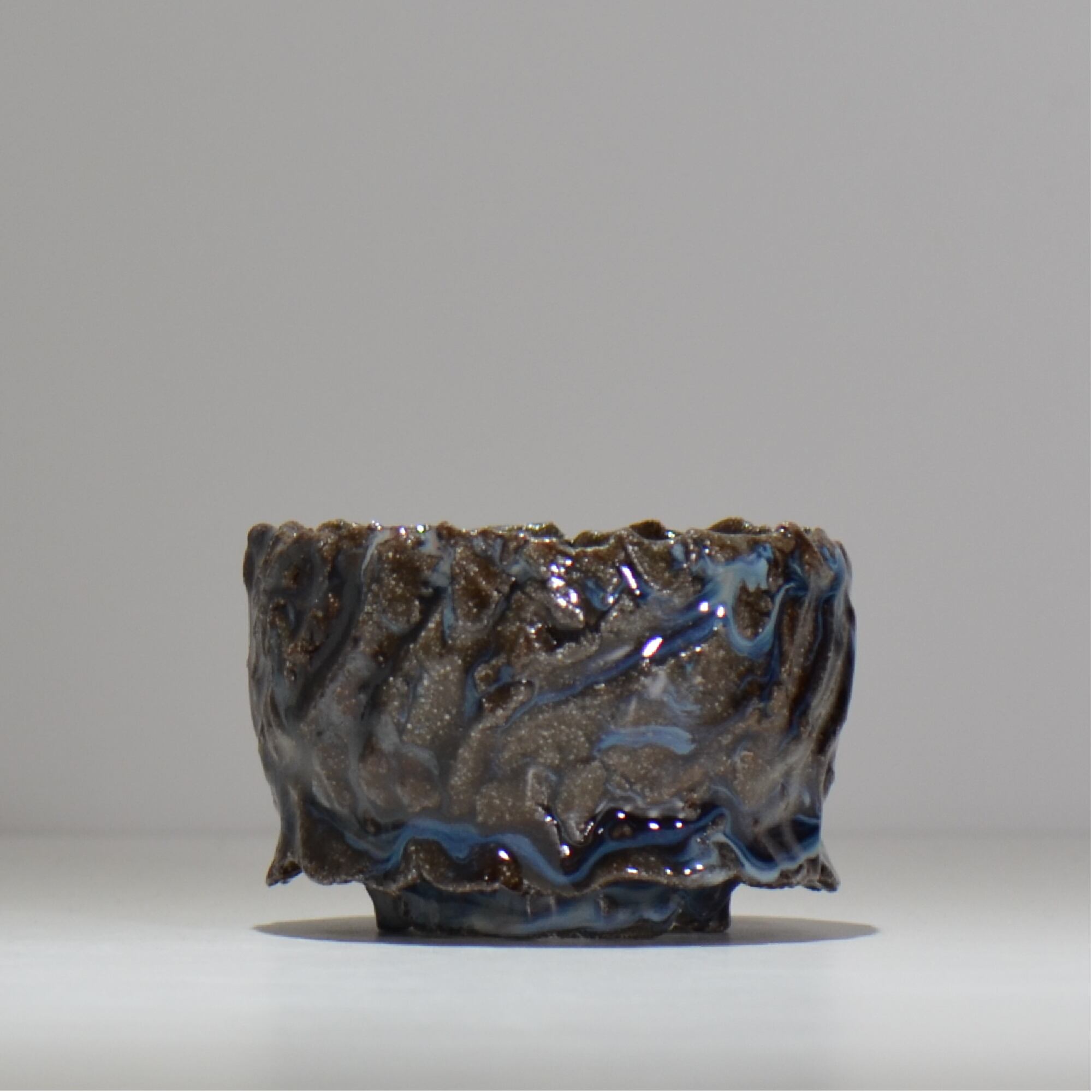釉薬の組合わせと流し掛けるバランス。焼き締め部分をあえて残しコントラストをより際立たせる工夫など、偶然と必然により作り出される深みのある作品は力強さと美しさを兼ね備えています。"