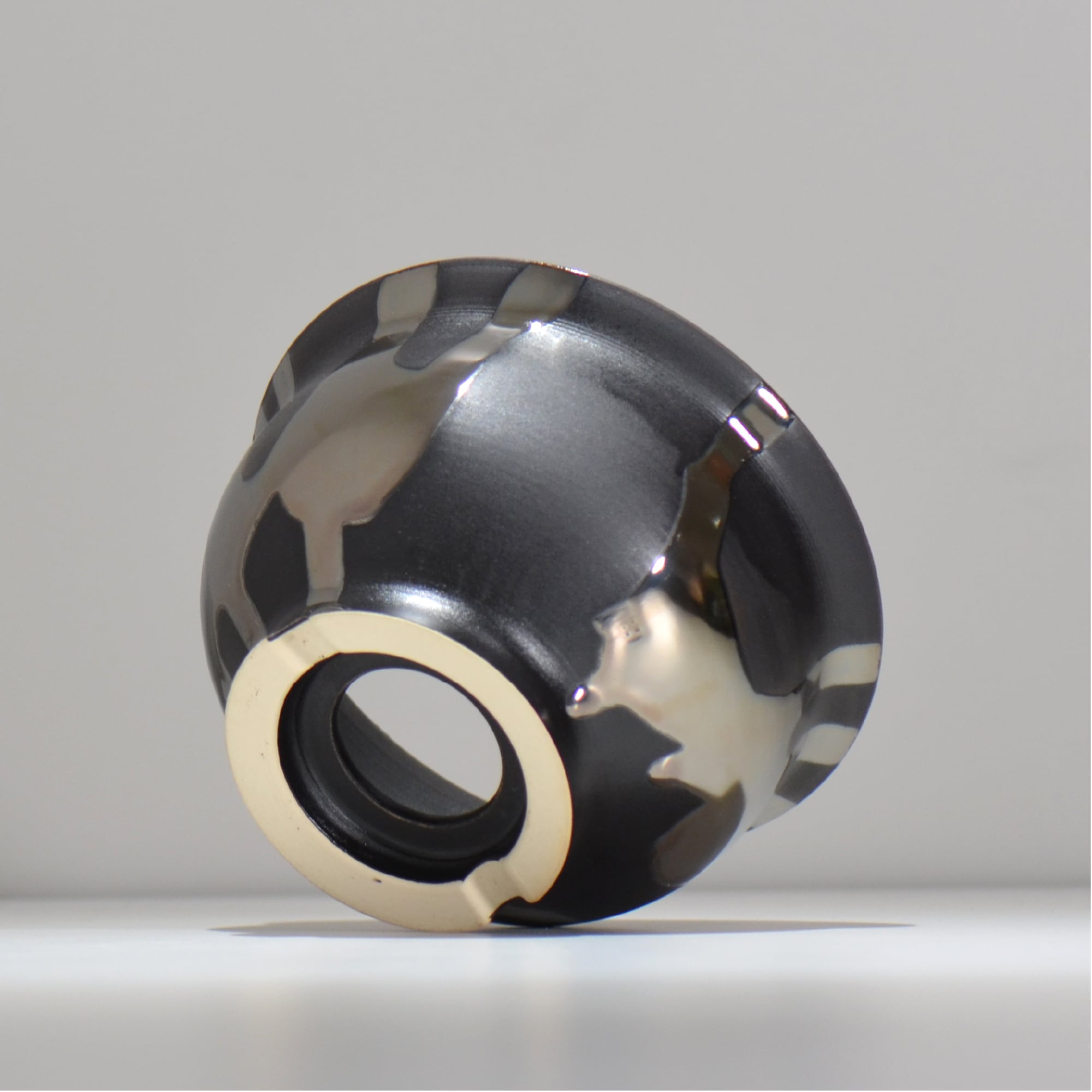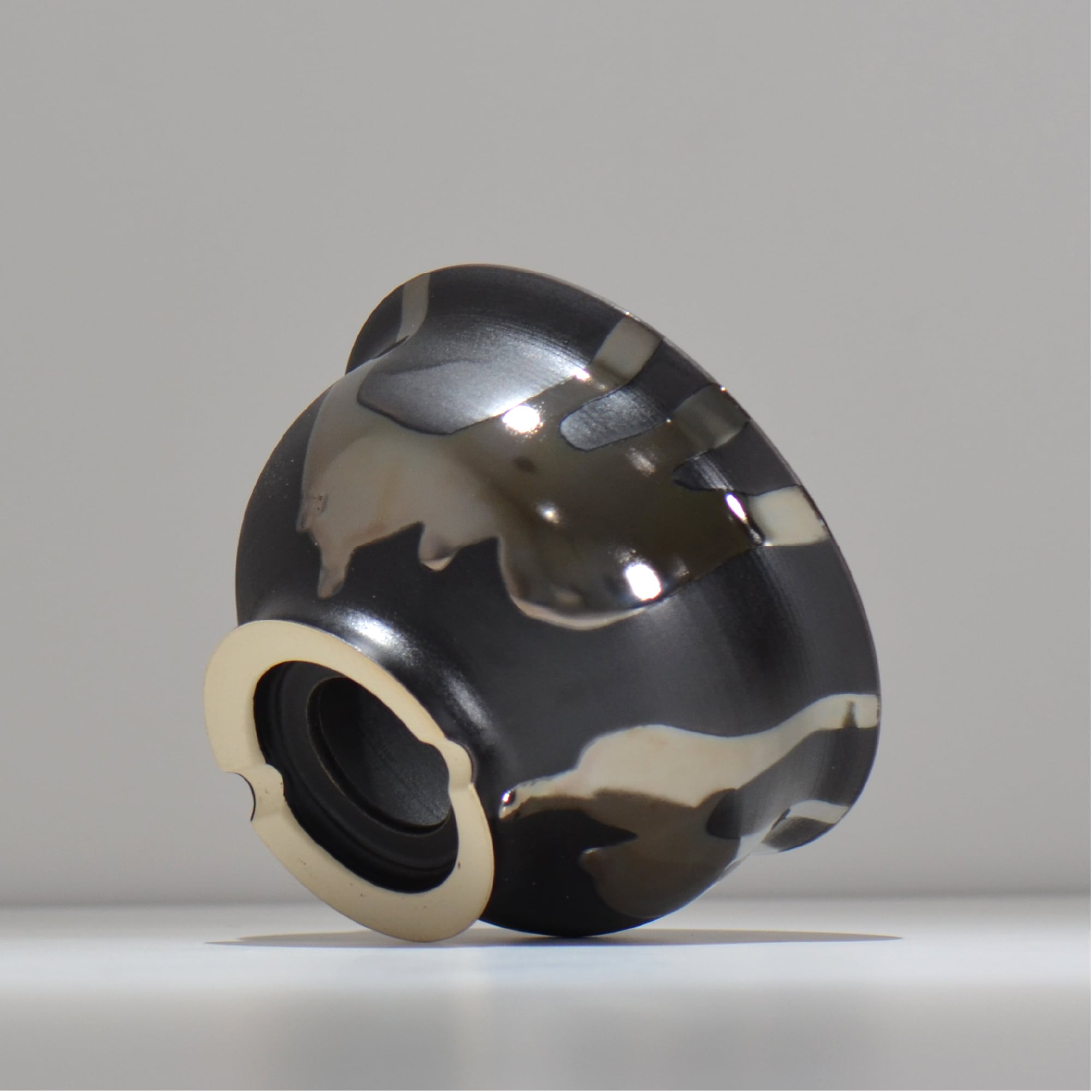 漆黒にシルバーでアクセントをつけています。マダラ模様は手間と時間をかけ丁寧に塗り分けています。